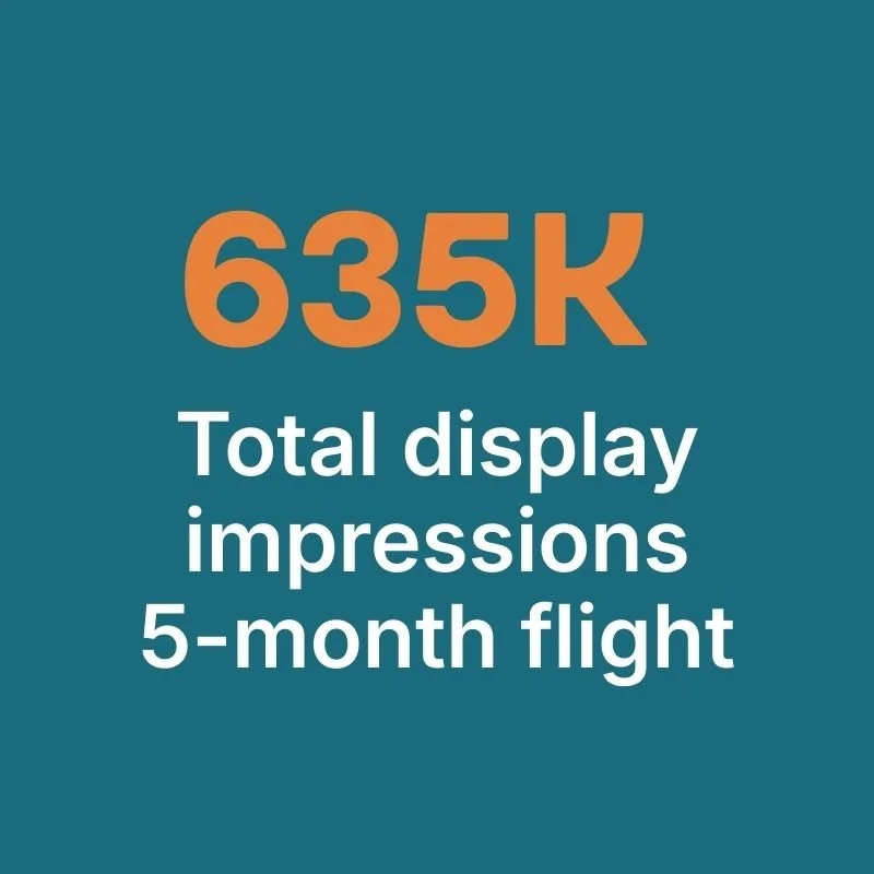 Spanish-language ads consistently outperformed English in click-through rate. Over 61% of all engagement came from the 25-54 demographic. Retargeting segments reached 0.19-0.20% CTR, above industry benchmarks for public health display.